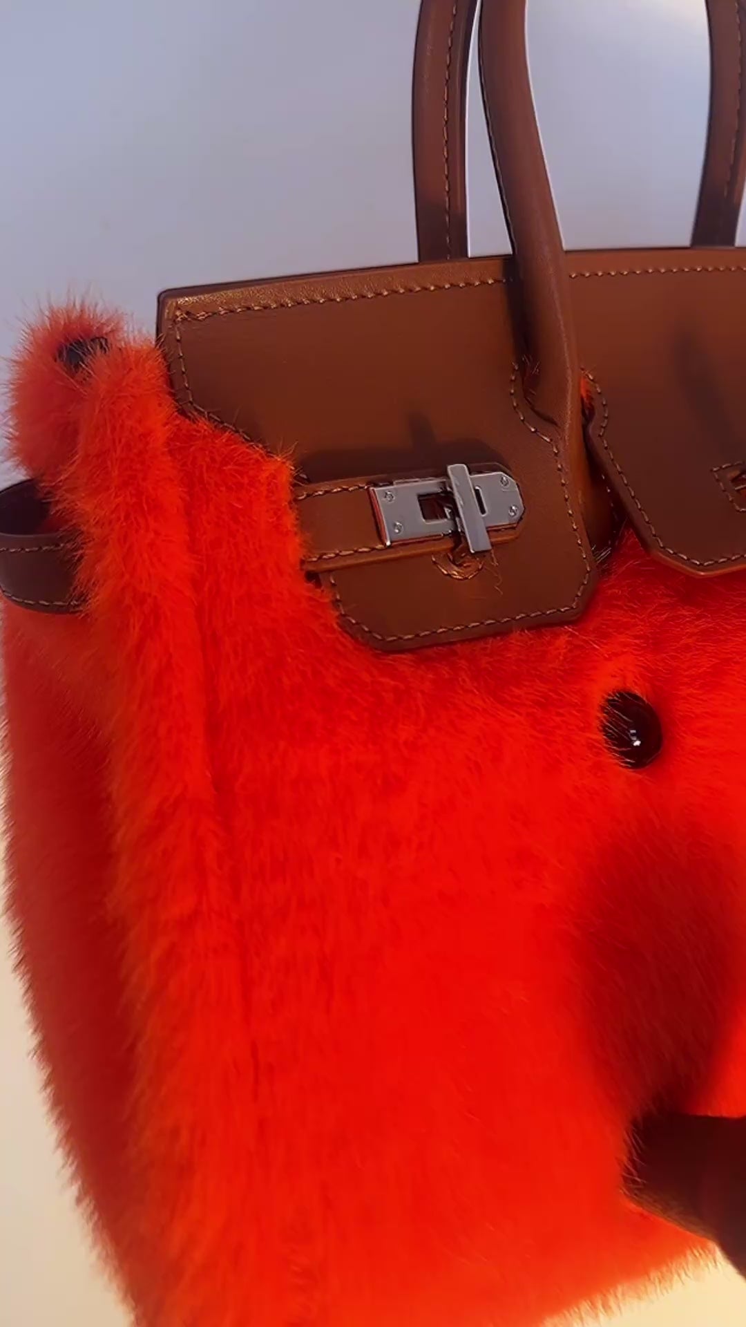 Bright orange JELLYKIN BAG, with brown full grain leather
